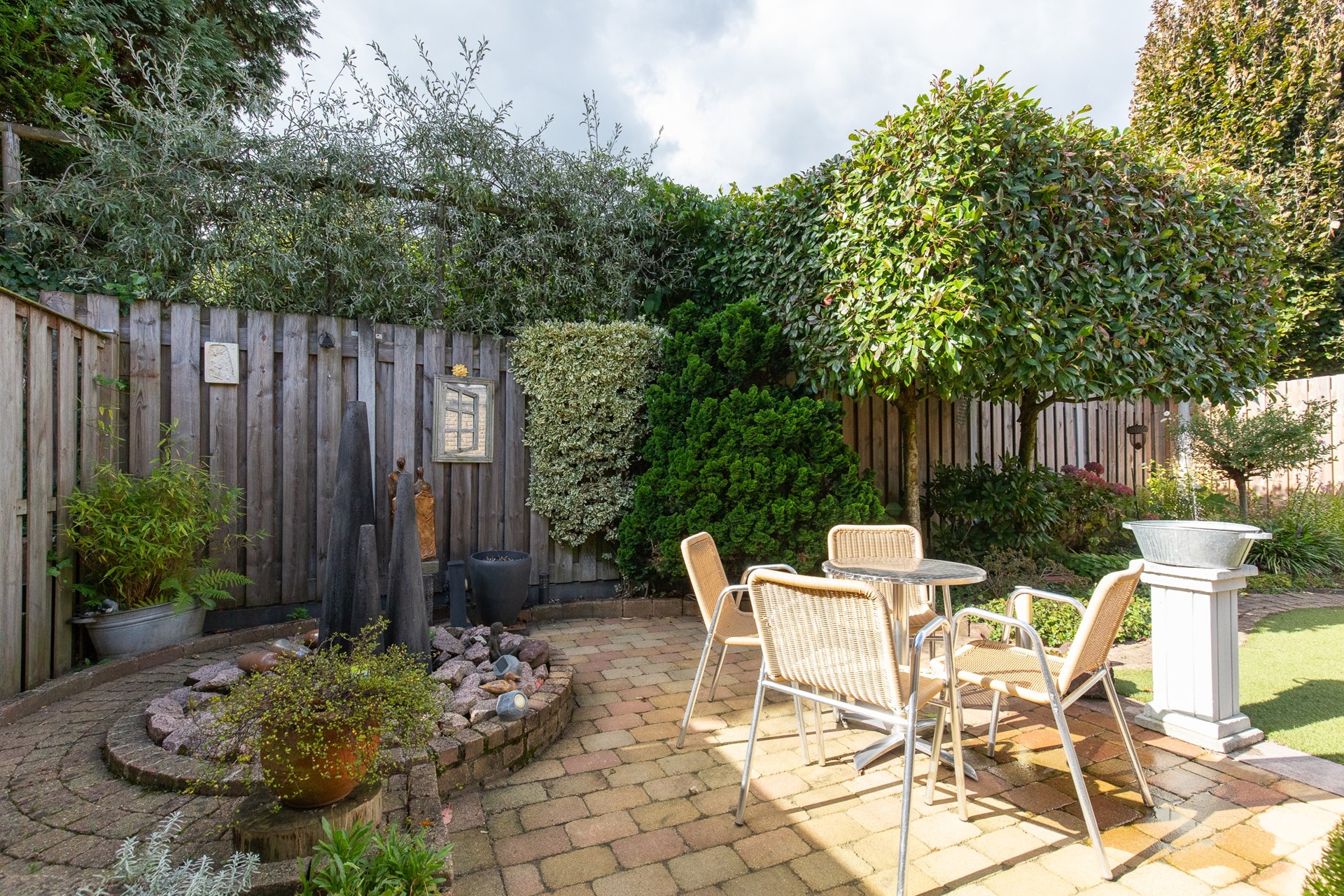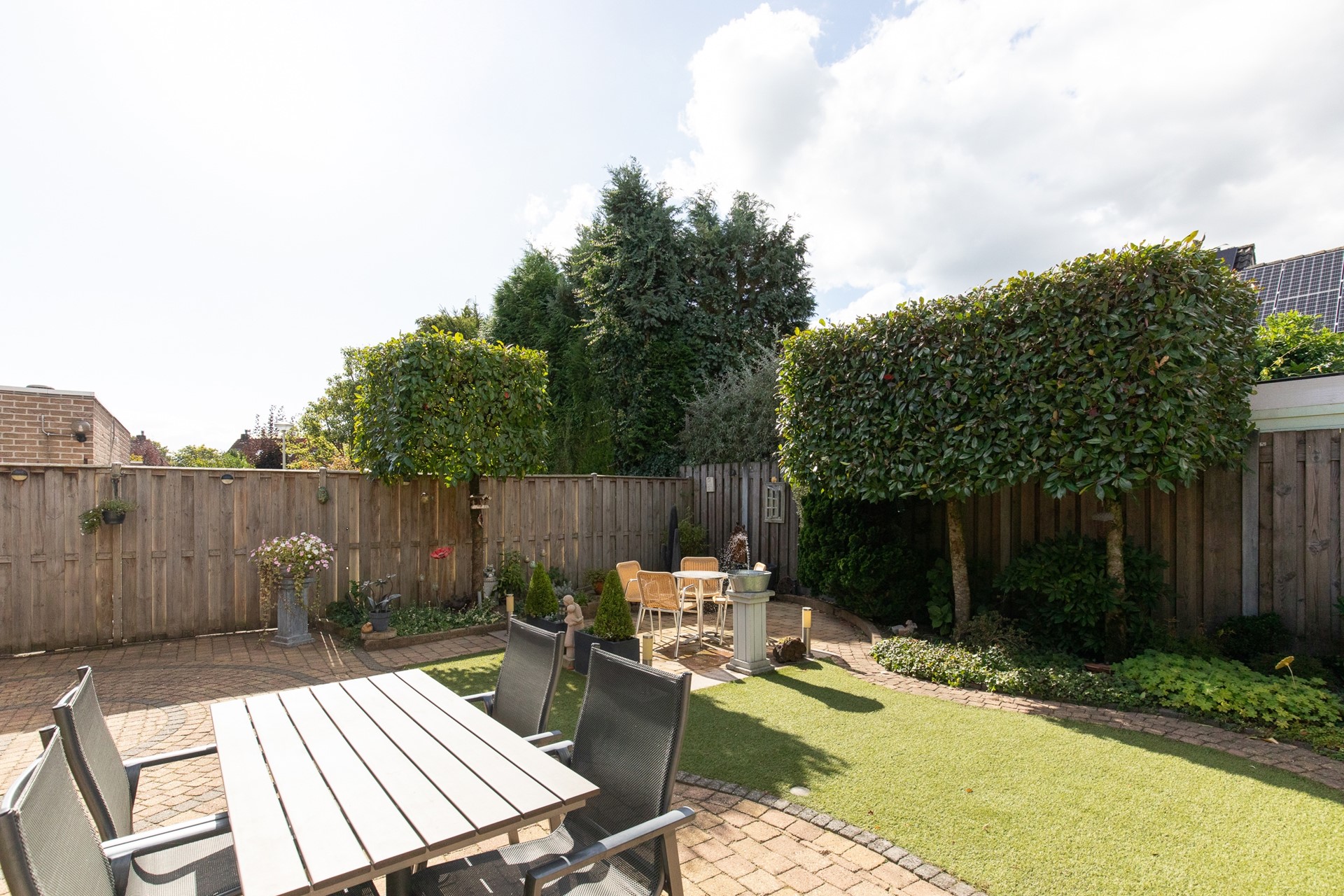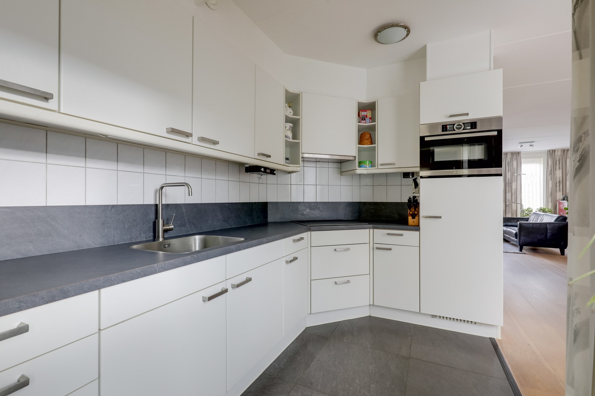 De halfopen keuken is uitgerust met voorzieningen zoals een inductiekookplaat, afzuigkap, heteluchtoven en een koelkast. Via de bijkeuken kom je in de heerlijke achtertuin waar je kunt genieten van veel privacy.