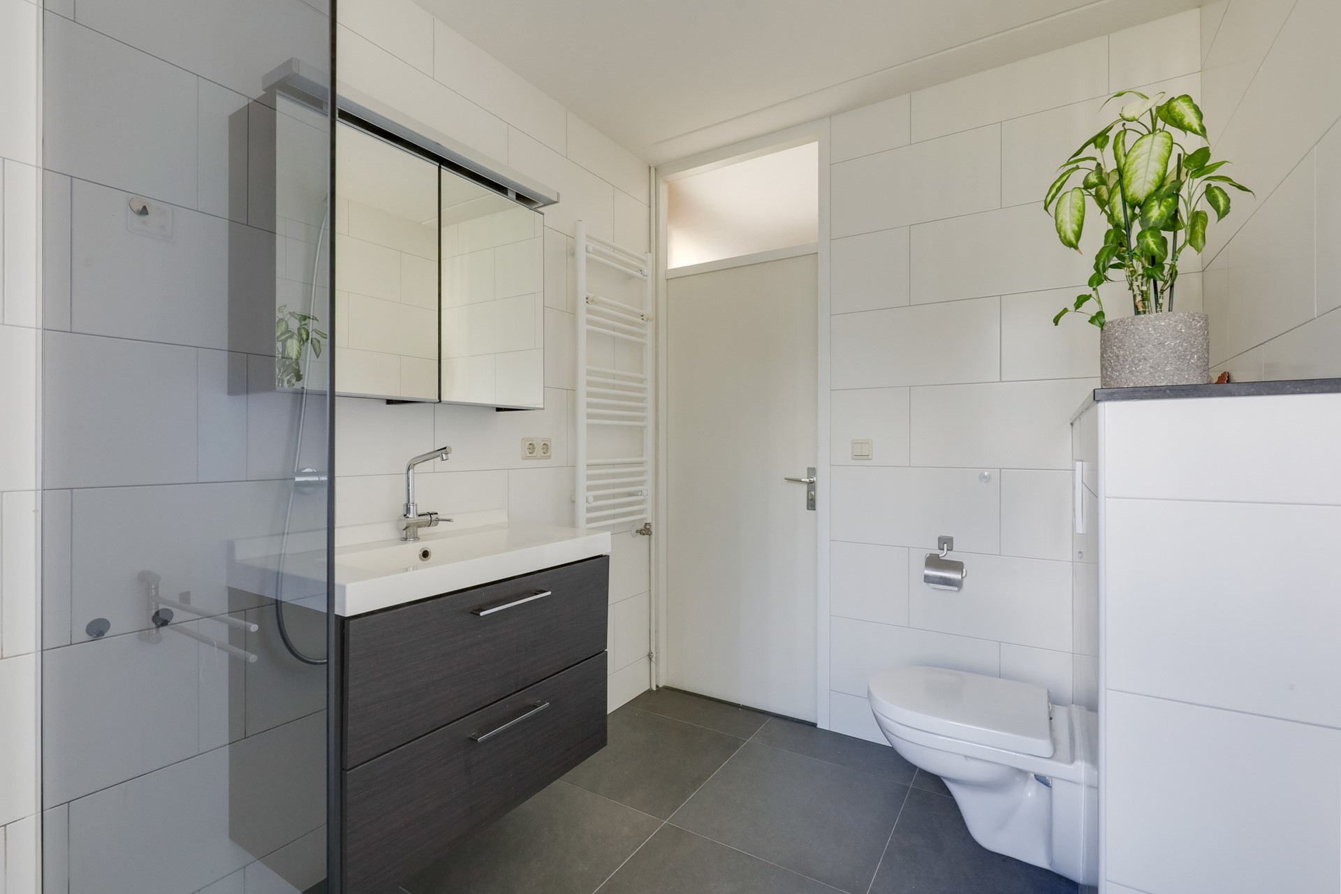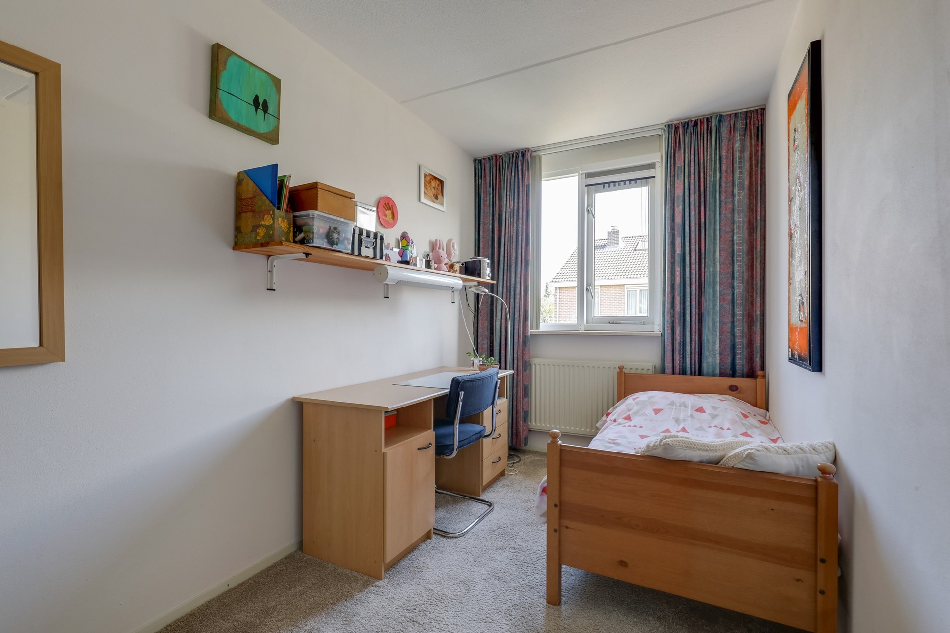 Op de eerste verdieping bevinden zich drie slaapkamers met tapijt, radiatoren en houten kozijnen met enkel glas. De badkamer is in 2020 gemoderniseerd en beschikt over een inloopdouche, een wastafelmeubel, een designradiator en een tweede toilet.