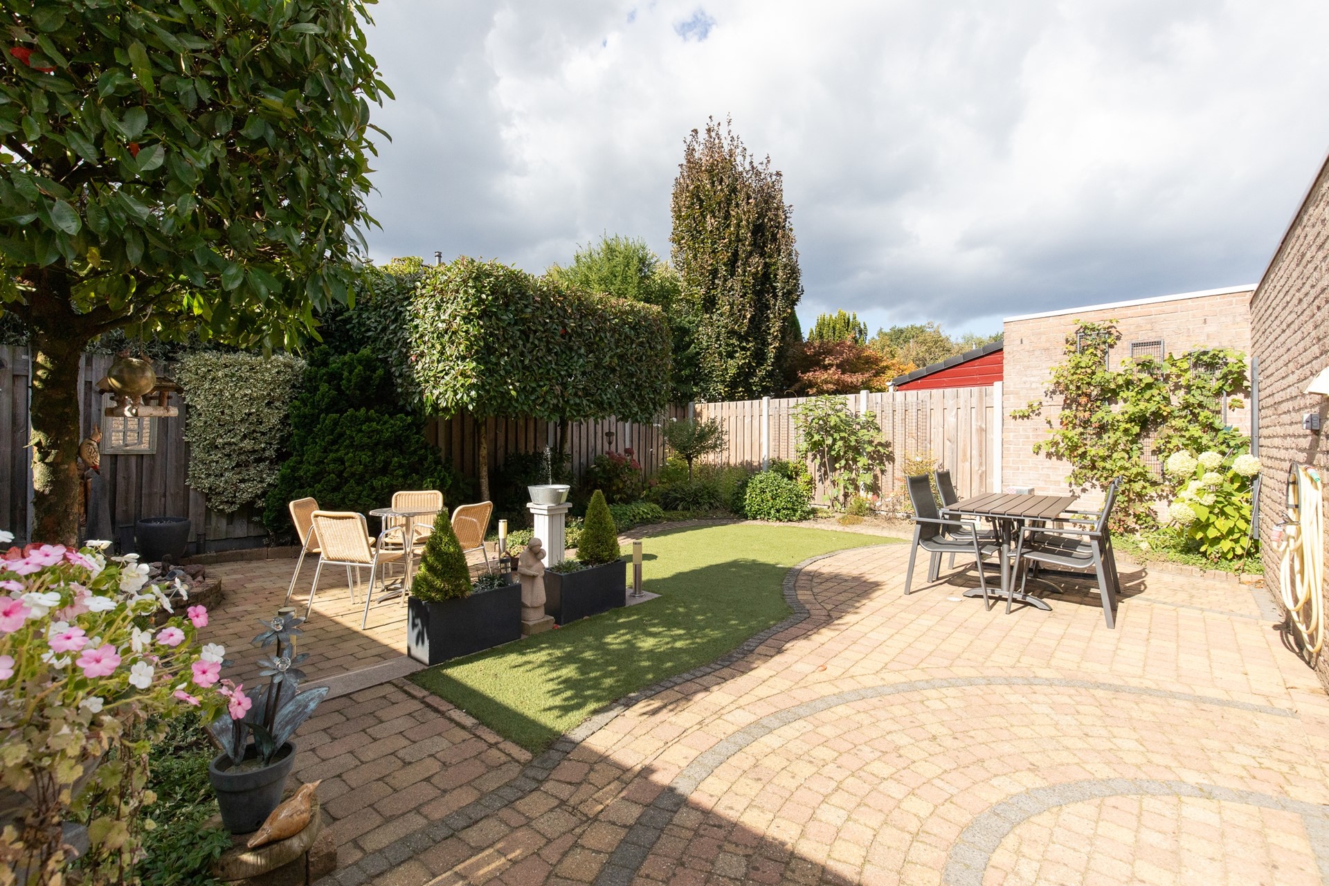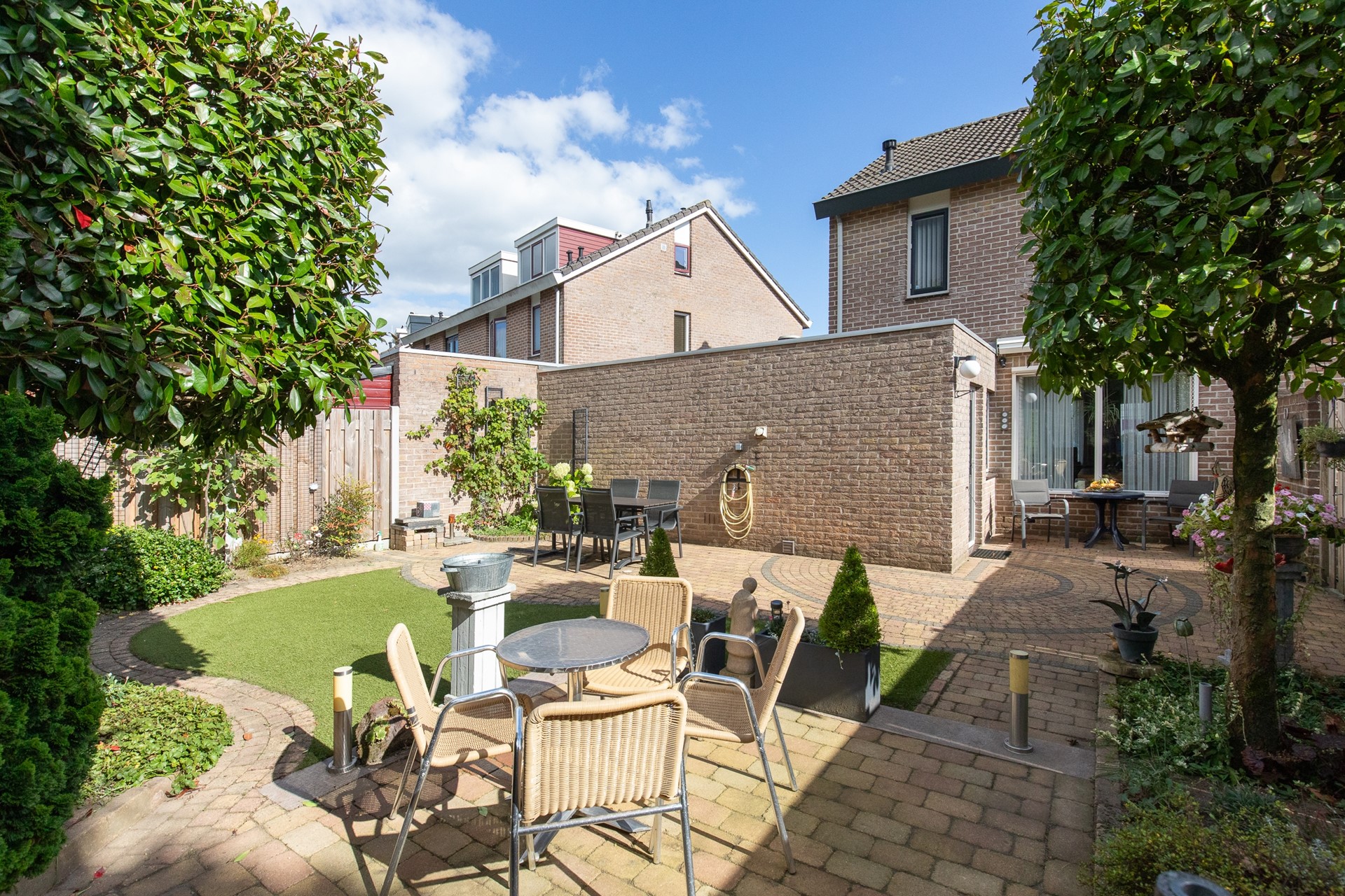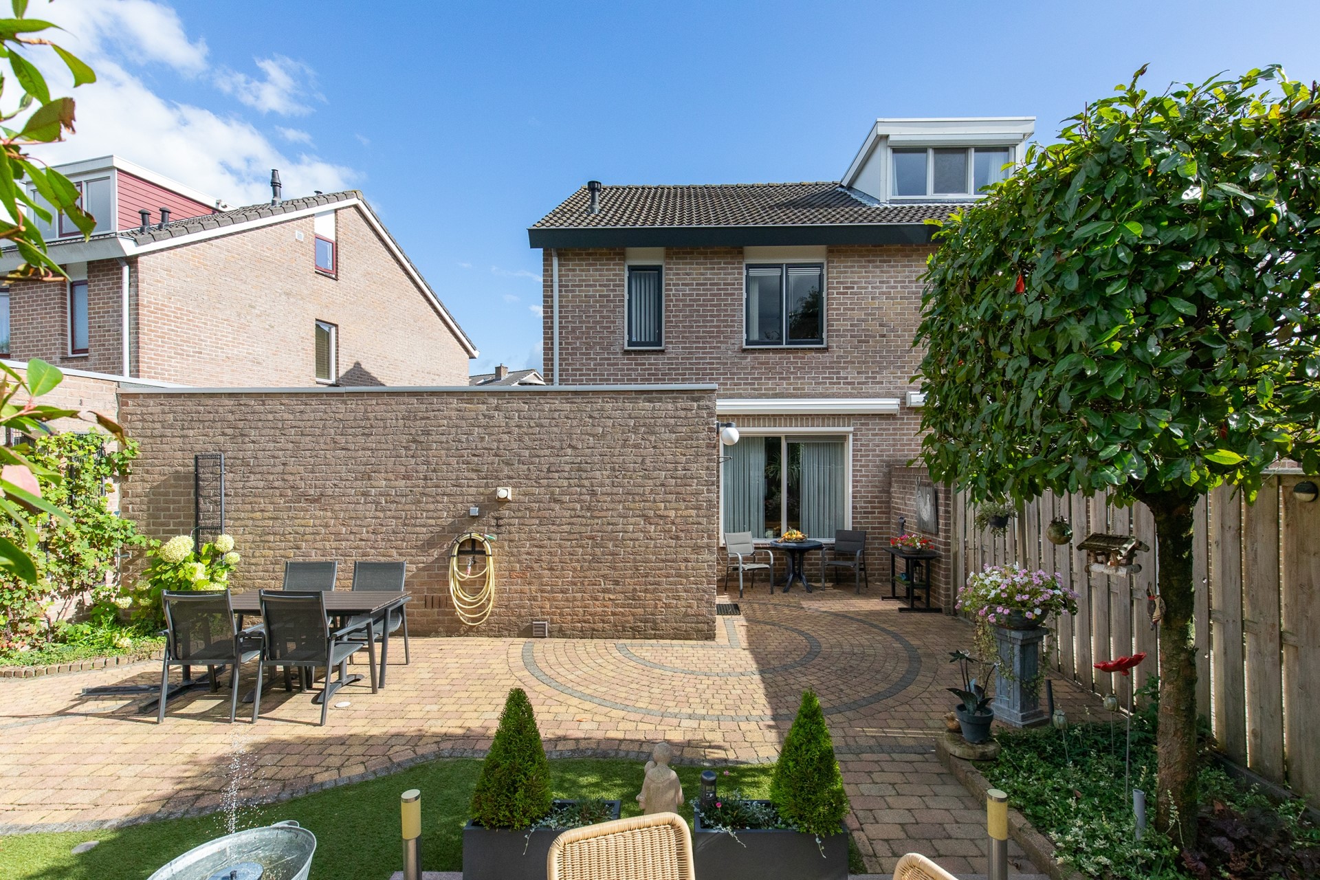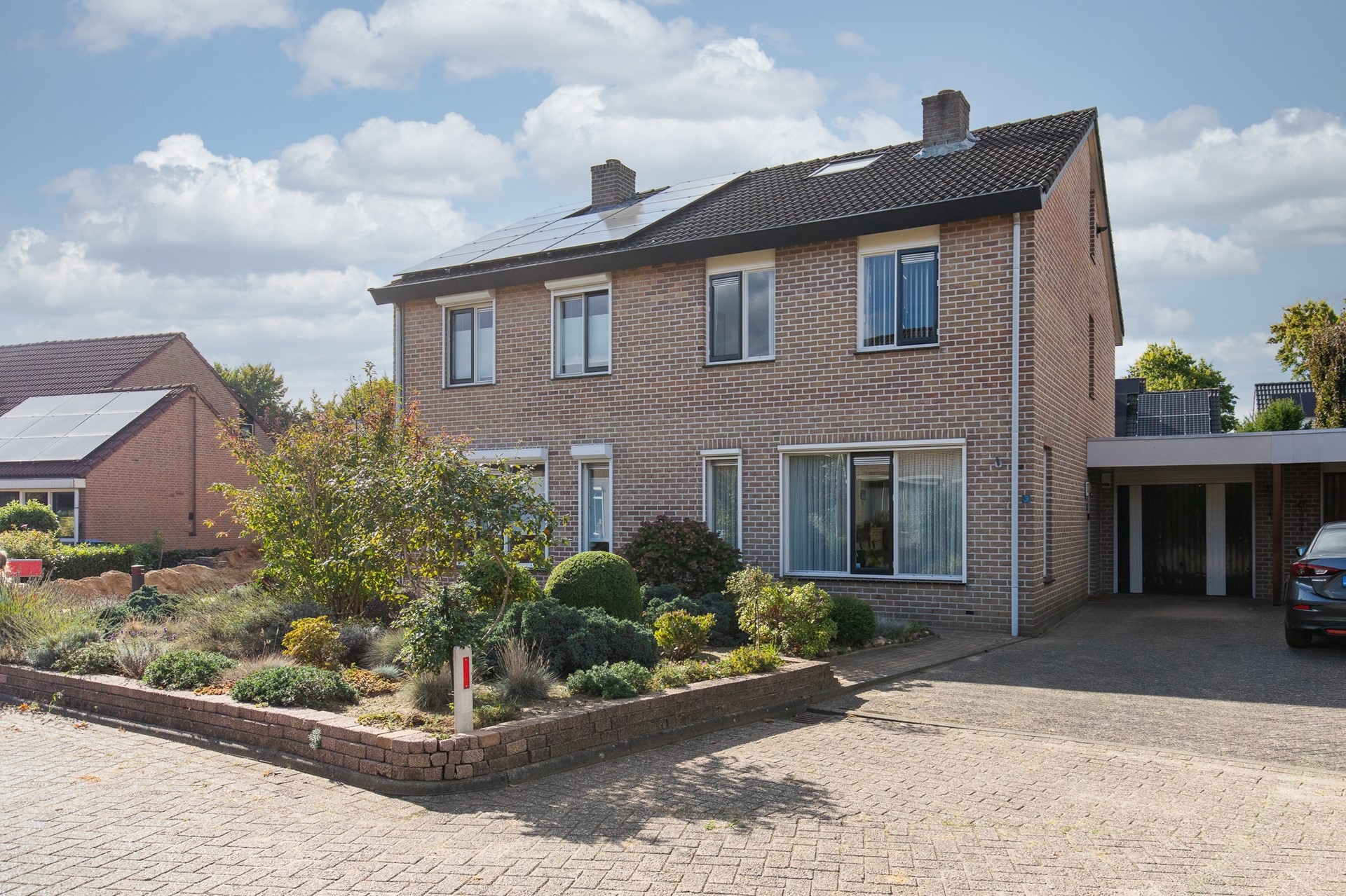 De voortuin is gelegen op het oosten en de achtertuin op het westen, waardoor je gedurende de dag altijd van de zon kunt genieten. Dit perceel biedt naast de woning ook een carport en een inpandig te bereiken garage, ideaal voor het veilig parkeren van je auto’s, fietsen en opbergen van o.a. tuingereedschap.
